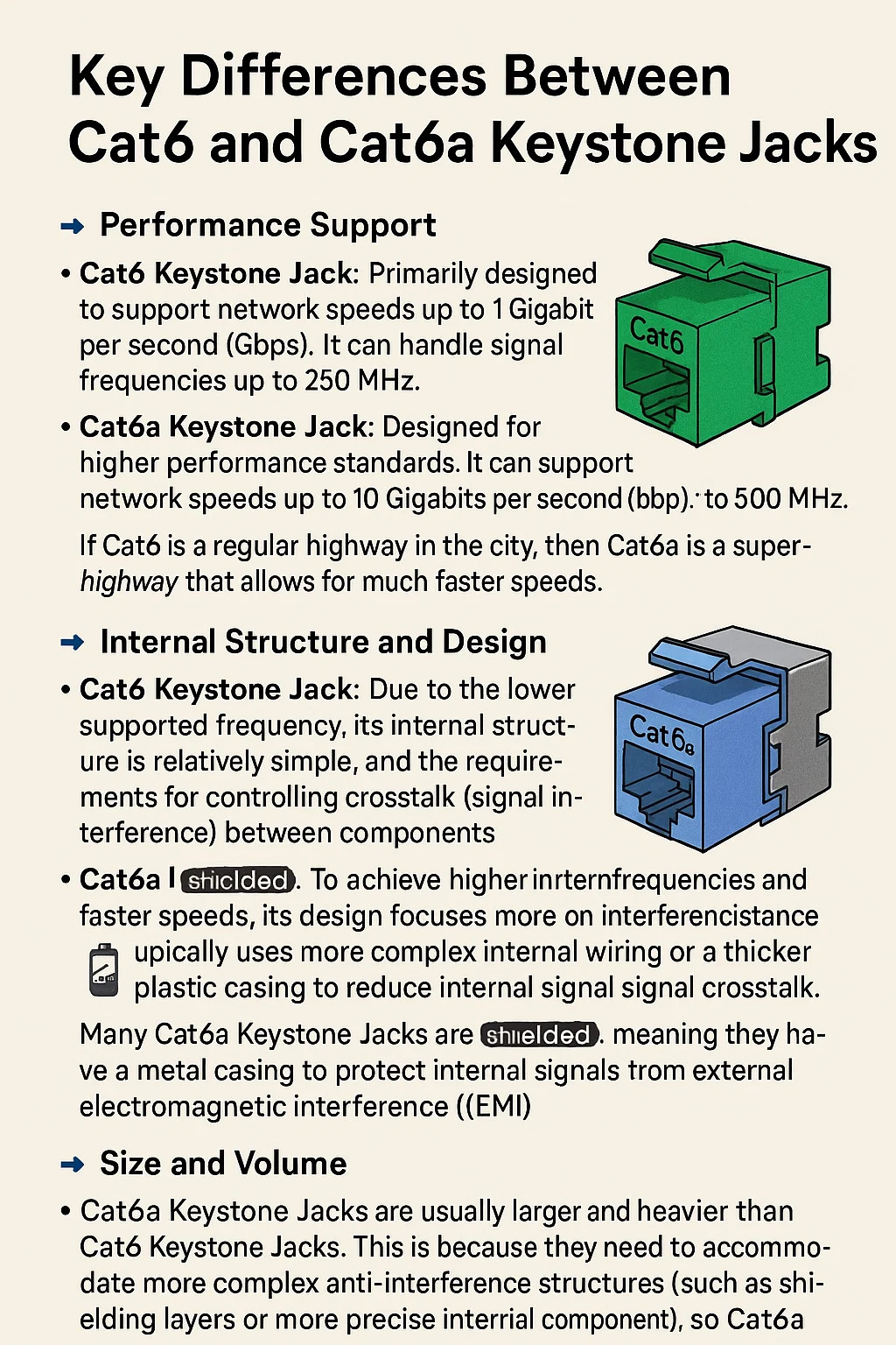Kluczowe różnice między gniazdami Keystone Cat6 i Cat6a