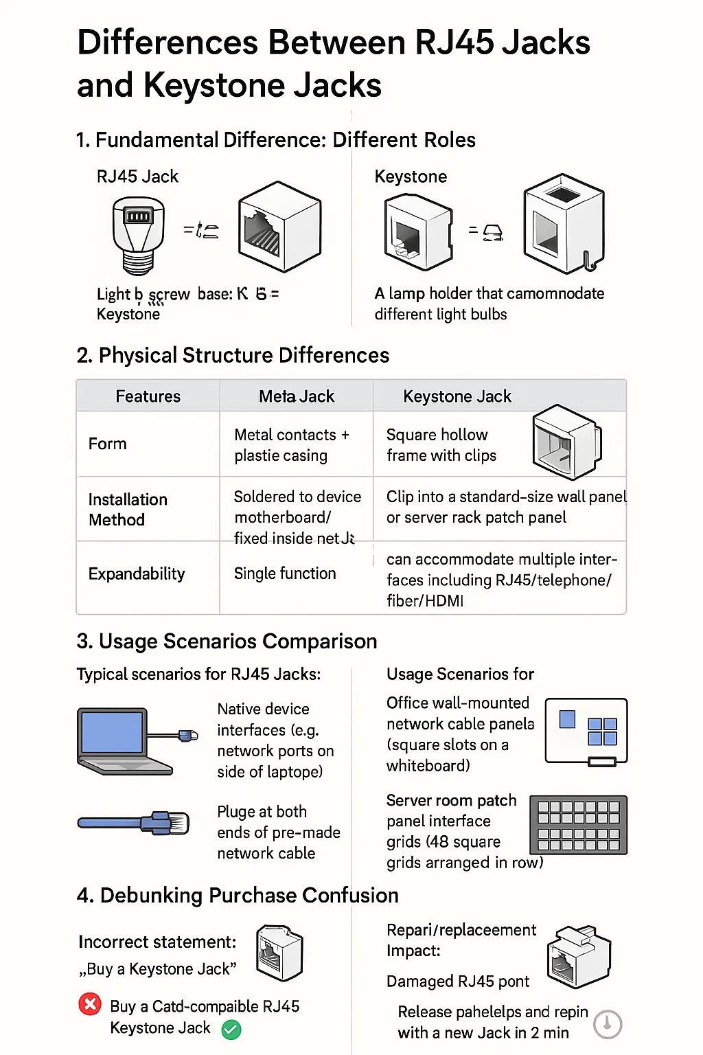 Różnice między gniazdami RJ45 i gniazdami Keystone