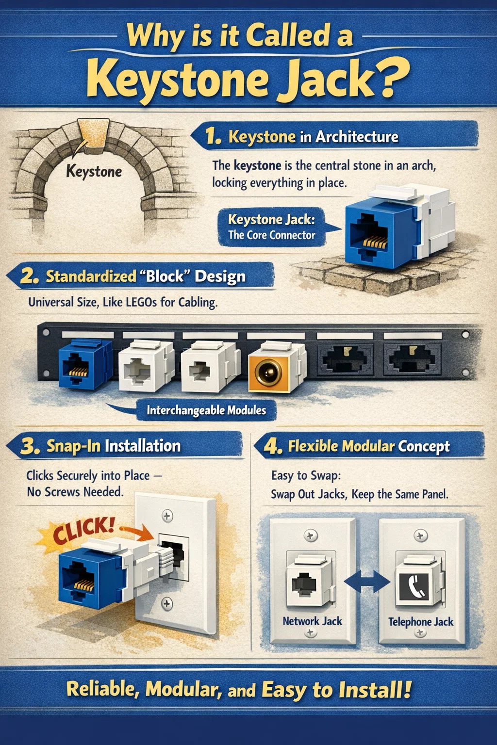 Produkty sieciowe zapożyczyły ten termin głównie dlatego, że Keystone Jack spełnia podobną rolę w modułowych systemach okablowania: